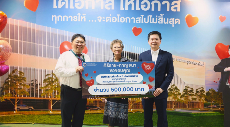 นาย สันติพล เจนวัฒนไพศาล ประธานเจ้าหน้าที่บริหาร บริษัท เจนก้องไกล จำกัด (มหาชน) “JPARK” ร่วมสมทบทุนมอบเงินบริจาคจำนวน 500,000 บาท กองทุนศิริราชมูลนิธิ (ศูนย์การแพทย์กาญจนาภิเษก) ภายใต้ รหัสทุน J000000 เพื่อสนับสนุนโครงการ “สร้างอาคารหอผู้ป่วยใน” ซึ่งมีเป้าหมายเพื่อเพิ่มศักยภาพในการดูแลผู้ป่วยและรองรับการให้บริการทางการแพทย์ที่ครอบคลุมมากยิ่งขึ้น สานต่อพันธกิจด้าน ความรับผิดชอบต่อสังคม และการพัฒนาสาธารณสุขของประเทศอย่างยั่งยืน