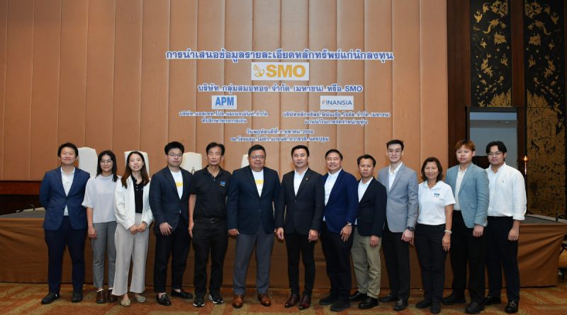 นายกิตติพงษ์ พวงมาลา ประธานเจ้าหน้าที่บริหาร นายกุศล ศรีเปารยะ ประธานเจ้าหน้าที่บริหารการเงิน บริษัท กลุ่มสมอทอง จำกัด (มหาชน) หรือ SMO หนึ่งในผู้นำในการผลิตและจำหน่ายน้ำมันปาล์มดิบของประเทศไทย ซึ่งมีโรงงาน 4 จุดครอบคลุมพื้นที่ยุทธศาสตร์สำคัญของปาล์มน้ำมัน และธุรกิจผลิตและจำหน่ายไฟฟ้าจากเชื้อเพลิงก๊าซชีวภาพ พร้อมด้วยดร.สมภพ ศักดิ์พันธ์พนม ประธานกรรมการ นายสุริยา ธรรมธีระ รองกรรมการผู้จัดการ บริษัท แอสเซท โปร แมเนจเม้นท์ จำกัด (APM) ในฐานะที่ปรึกษาทางการเงินและนายภควัฒน์ ตุลยนิติกุล ผู้อำนวยการอาวุโส บริษัทหลักทรัพย์ ฟินันเซียไซรัส จำกัด (มหาชน) ในฐานะแกนนำการจัดจำหน่ายและรับประกันการจำหน่าย ร่วมนำเสนอข้อมูลธุรกิจ วิสัยทัศน์ ข้อมูลทางการเงิน และศักยภาพการเติบโตของบริษัท ให้แก่นักลงทุนในจังหวัดนครปฐม โดยมีนักลงทุนให้ความสนใจเข้าร่วมรับฟังข้อมูลเป็นจำนวนมาก ณ ห้องทวารวดี 1 โรงแรมไมด้า แกรนด์ ทวารวดี จ.นครปฐม
