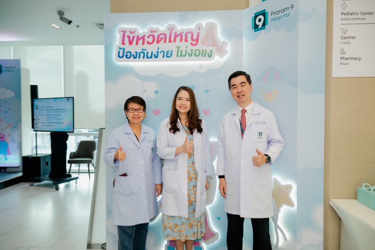 โรงพยาบาลพระรามเก้า จึงจัดงานรณรงค์การป้องกันอย่างจริงจังพร้อมเปิดตัวนวัตกรรมป้องกันไข้หวัดใหญ่แบบพ่นจมูก โดยมีกุมารแพทย์ผู้เชี่ยวชาญ 3 ท่าน ได้แก่ รศ.พญ.รวีรัตน์ สิชฌรังษี กุมารแพทย์ผู้ชำนาญการ ด้านโรคภูมิแพ้และภูมิคุ้มกัน รพ.พระรามเก้า, พญ.พวงทอง บุณยธรรมา กุมารแพทย์ผู้ชำนาญการด้านโรคระบบประสาทในเด็ก รพ.พระรามเก้า พญ.นงนภัส เก้าเอี้ยน กุมารแพทย์ผู้ชำนาญการด้านโรคระบบทางเดินหายใจ รพ.พระรามเก้า ที่มาพร้อมกับ คุณจูน-กษมา ศิลาชัย และ น้องออกู้ด-ดช.นครินทร์ ศิลาชัย, น้องออเกรซ-ดญ.ศิริกร ศิลาชัย ร่วมแชร์เคล็ดลับการดูแลลูกให้แข็งแรง ห่างไกลไข้หวัดใหญ่ แบบทำได้จริงในทุกบ้าน เพราะ “ ไข้หวัดใหญ่ ป้องกันง่าย ไม่งอแง”