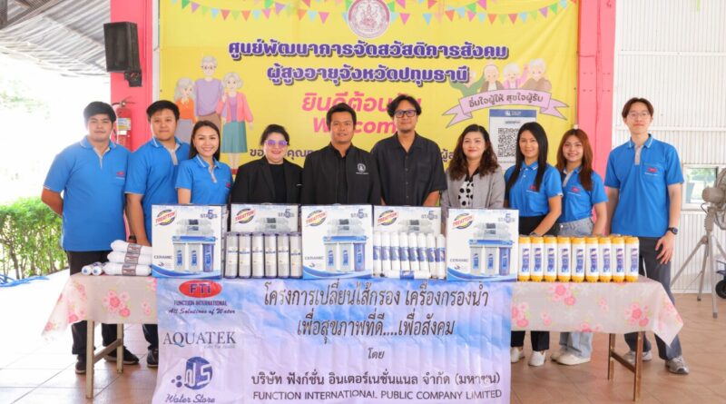ทีมการตลาดและประชาสัมพันธ์ บริษัท ฟังก์ชั่น อินเตอร์เนชั่นแนล จำกัด (มหาชน) หรือ FTI พร้อมด้วยทีมงาน ลงพื้นที่เปลี่ยนชุดเครื่องกรองน้ำดื่ม เพื่อยกระดับมาตรฐานน้ำดื่มให้สะอาด ปลอดภัย และเพียงพอต่อการใช้งานของผู้พักอาศัยในศูนย์ฯ ณ ศูนย์พัฒนาการจัดสวัสดิการสังคมผู้สูงอายุจังหวัดปทุมธานี