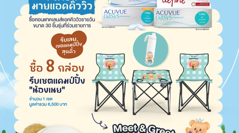 • รับบัตรเข้างาน Meet & Greet (จัดวันที่ 24 เมษายน 2569) และเซตโต๊ะเก้าอี้แคมป์ปิ้ง พร้อมกระบอกน้ำ Magsafe ลายน้องเนย เมื่อซื้อคอนแทคเลนส์รายวัน 30 ชิ้น จำนวน 8 กล่อง/ใบเสร็จ เพียง 300 เซต (จำกัด 1 สิทธิ์ต่อ 1 หมายเลขสมาชิก)