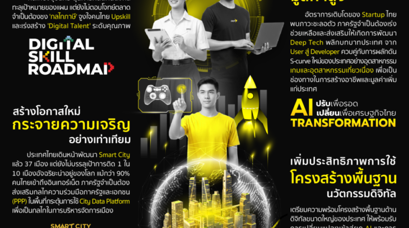 การพัฒนาเมืองอัจฉริยะ (Smart City) ยังคงเป็นความท้าทายสำคัญที่ต้องเร่งสร้างการมีส่วนร่วมระหว่างภาครัฐ ภาคเอกชน และภาคประชาชน โดยการพัฒนาเมืองยังจำเป็นต้องใช้ข้อมูลเชิงพื้นที่ในการจัดสรรงบประมาณที่เหมาะสมและตอบโจทย์ศักยภาพแต่ละพื้นที่มากขึ้น รวมถึงการเปิดโอกาสความร่วมมือผ่านรูปแบบ Public-Private Partnership (PPP) เพื่อดึงศักยภาพของภาคเอกชนมาร่วมพัฒนาระบบบริการดิจิทัลในเมืองควบคู่ไปกับภาครัฐที่สามารถนำไปสู่การบรรลุเป้าหมายการเป็นหนึ่งในเมืองอัจฉริยะน่าอยู่ของโลก นอกจากนี้ ด้านการเข้าถึงเทคโนโลยี โดยเฉพาะในภาคอุตสาหกรรม จำเป็นต้องเร่งขับเคลื่อนผ่านการสร้าง Use Case เพื่อให้ผู้ประกอบการเกิดความตระหนักและเห็นถึงความสำคัญของการประยุกต์ใช้เทคโนโลยีดิจิทัลในธุรกิจของตนเองอย่างเป็นรูปธรรม และดำเนินการเสริมสร้าง Digital Literacy ให้ประชาชนทุกกลุ่ม โดยเฉพาะกลุ่มเปราะบางอย่างต่อเนื่อง เพื่อให้เข้าถึงบริการดิจิทัลและโอกาสทางเศรษฐกิจได้อย่างเท่าเทียมทั่วทุกภูมิภาคของประเทศ