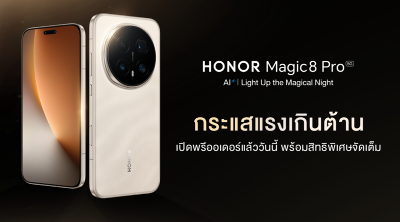 17 กุมภาพันธ์ 2569, กรุงเทพฯ – ออเนอร์ (HONOR) ผู้ให้บริการอุปกรณ์อัจฉริยะชั้นนำระดับโลก ประกาศความสำเร็จครั้งสำคัญของ HONOR Magic8 Pro สมาร์ตโฟนเรือธงรุ่นล่าสุด ที่สร้างปรากฏการณ์ความฮอตฮิตติดลมบนทันทีที่เปิดตัว โดยได้รับกระแสตอบรับอย่างล้นหลามจากผู้ใช้งานทั่วประเทศ และมียอดสั่งจองเข้ามาอย่างต่อเนื่อง สะท้อนให้เห็นถึงความเชื่อมั่นของผู้บริโภคที่มีต่อแบรนด์ และความต้องการสัมผัสประสบการณ์นวัตกรรมสมาร์ตโฟนระดับพรีเมียมที่ตอบโจทย์ทุกไลฟ์สไตล์